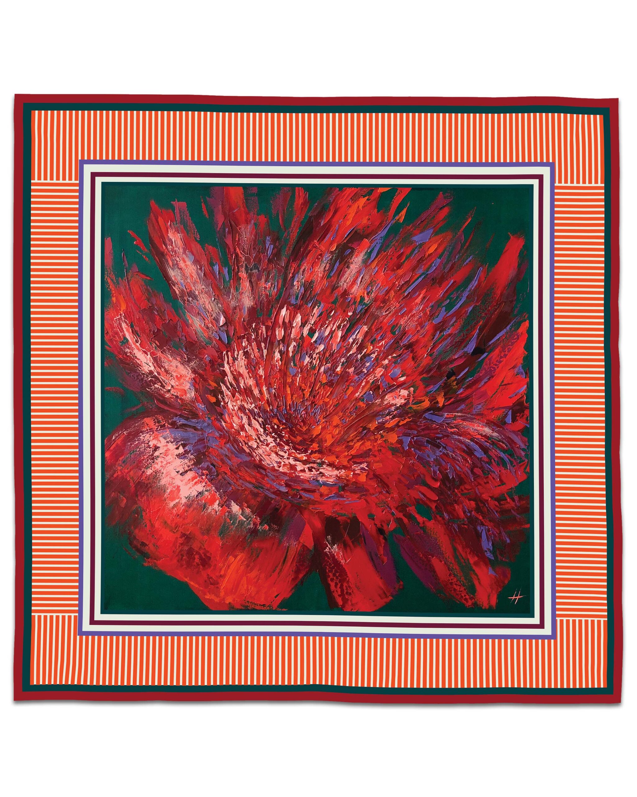 “My art captures movement, color, and emotion. With Bloom of Scarlet Winds, I translated the energy of an expressive red flower into fabric, allowing the artwork to live beyond the canvas and become part of your everyday beauty. Each scarf is a piece of my artistic world — vibrant, alive, and created to inspire.” — Nekol